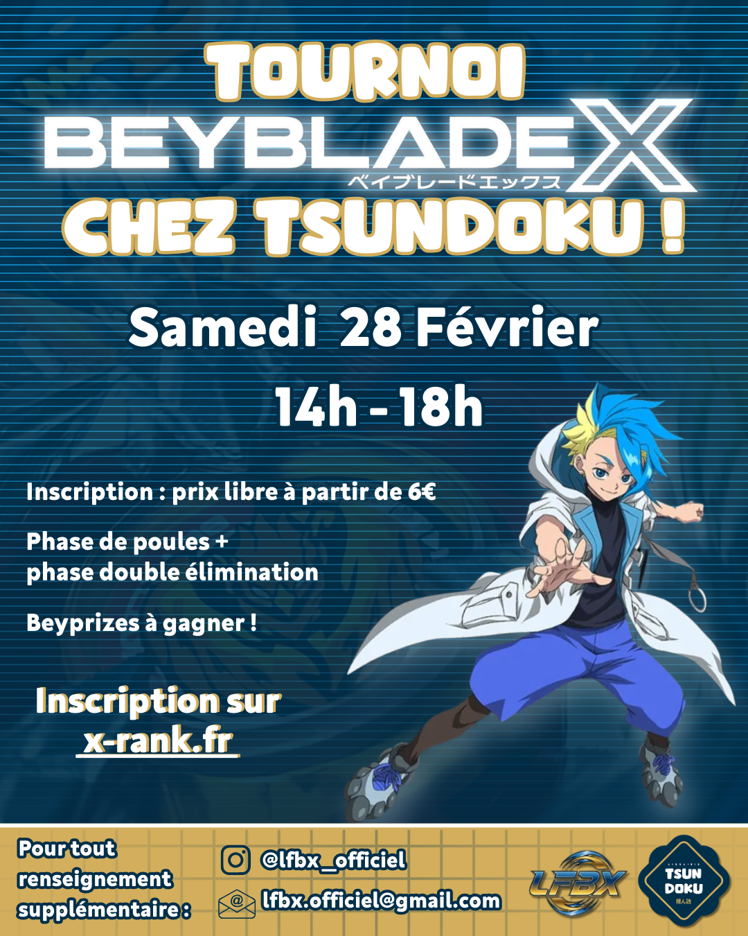 Tsundoku accueille la @lfbx_officiel pour un tournoi Beyblade X ouverts à tous niveaux !